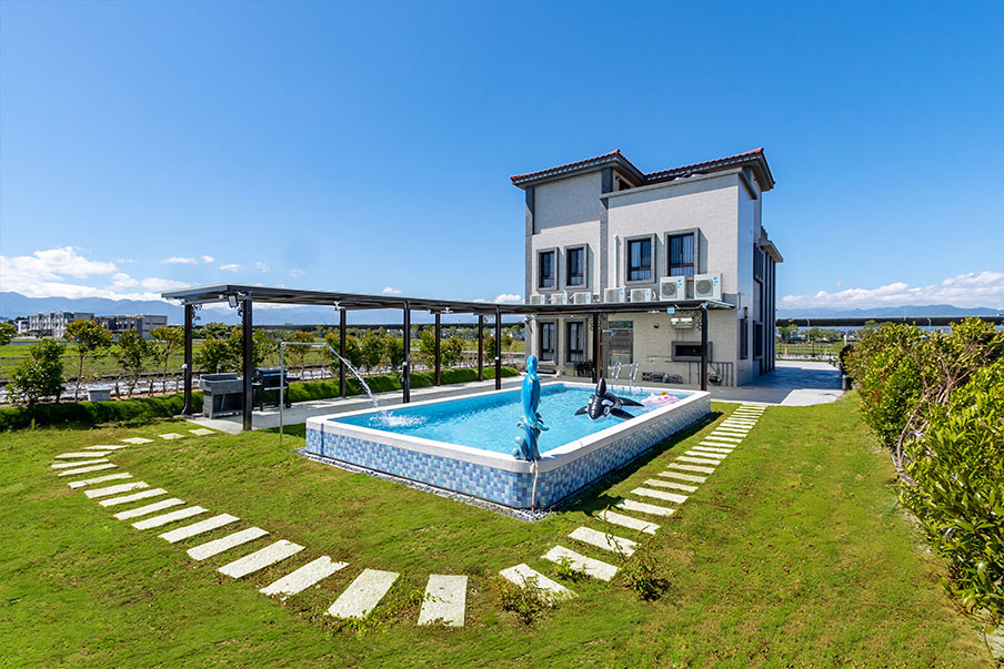 在稻浪間,陽光灑在波光粼粼的泳池上,微風帶來稻香的氣息。民宿裡的裝潢出自主人之手、繽紛的彩繪揮灑出雲朵上的小貓與龜山島的遠影、都藏著溫度與想像,在色彩間描出一份專屬的溫柔。